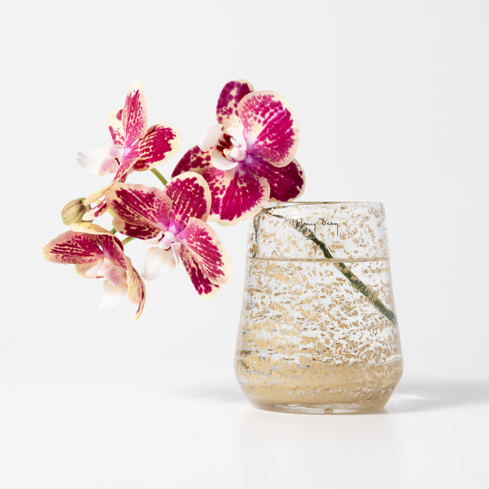 「Clemence」のフォルムを、よりコンパクトなサイズへと再構成した「Clementine」。活け口に向かって緩やかにすぼむデザインは、少量の花やグリーンでも自然にまとまります。奥行き 7 x 高さ 11 (cm)