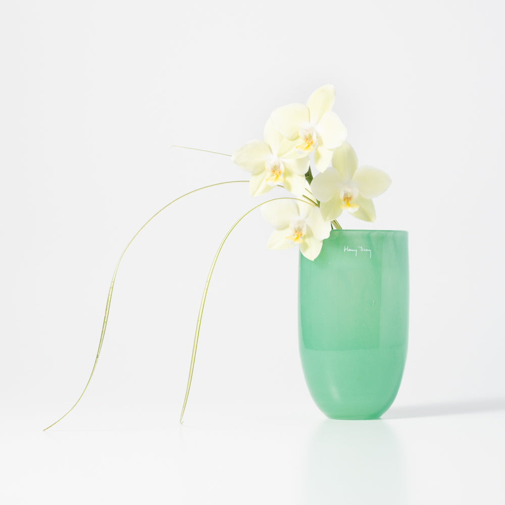 The vase opening is oval. The shape tapers toward the bottom, creating a light impression. When filled with water, it becomes even more stable, so you can arrange plenty of flowers. You can also put in a voluminous bouquet or slightly tall flowers. Depth 6.5 x Width 11 x Height 16 (cm)