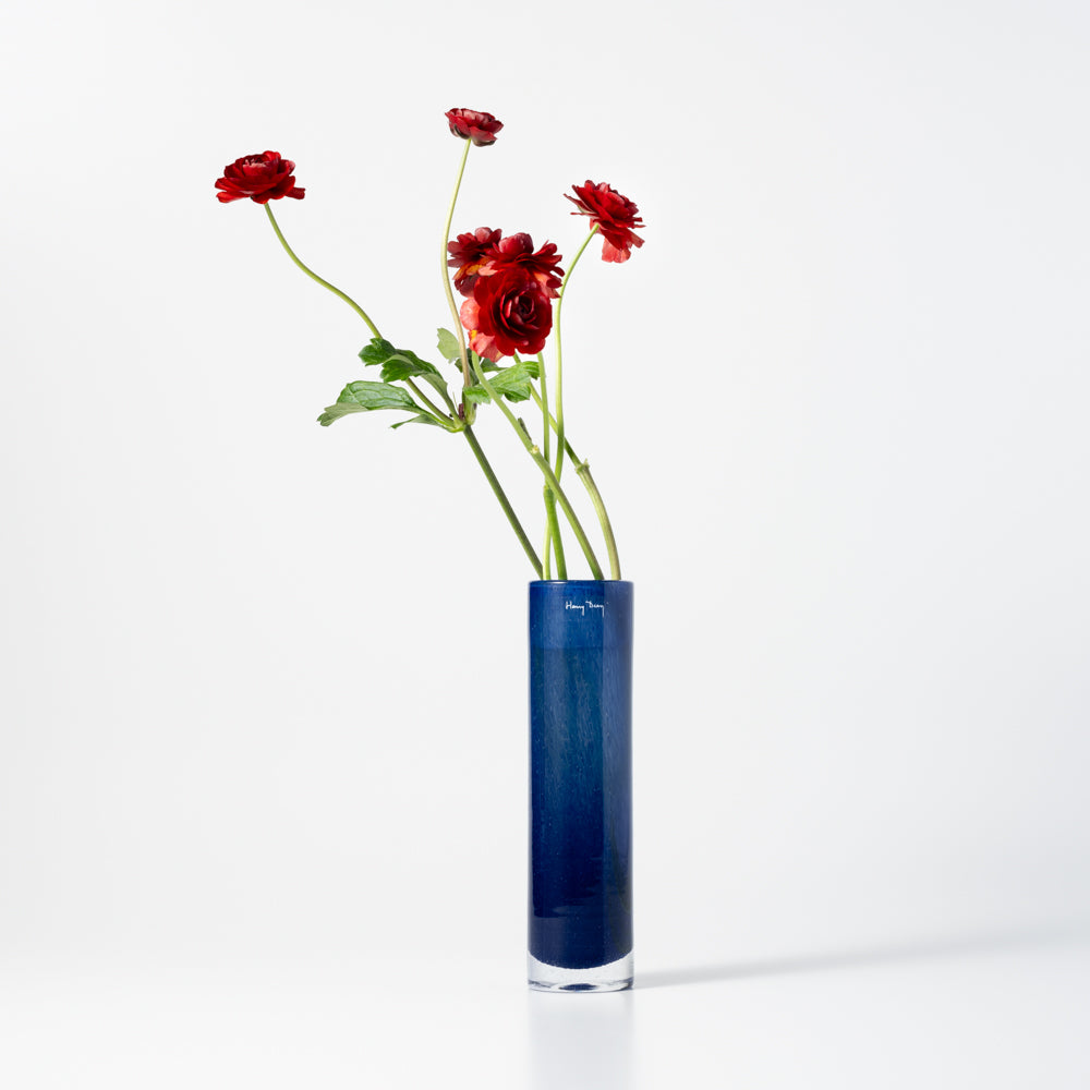 「Pipe M」は、見た目はシャープながら、たっぷりと花を活けられます。奥行き6 × 高さ25 (cm)
