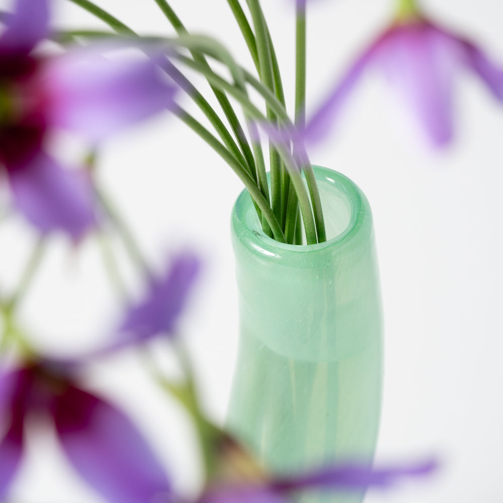 花屋で売られている一般的なサイズの花を一輪活けるに最適なサイズの「Glass L」。ゆるやかなカーブは、植物の茎の形から着想を得てデザインされました。ギフトにもおすすめです。高さ 32 (cm)