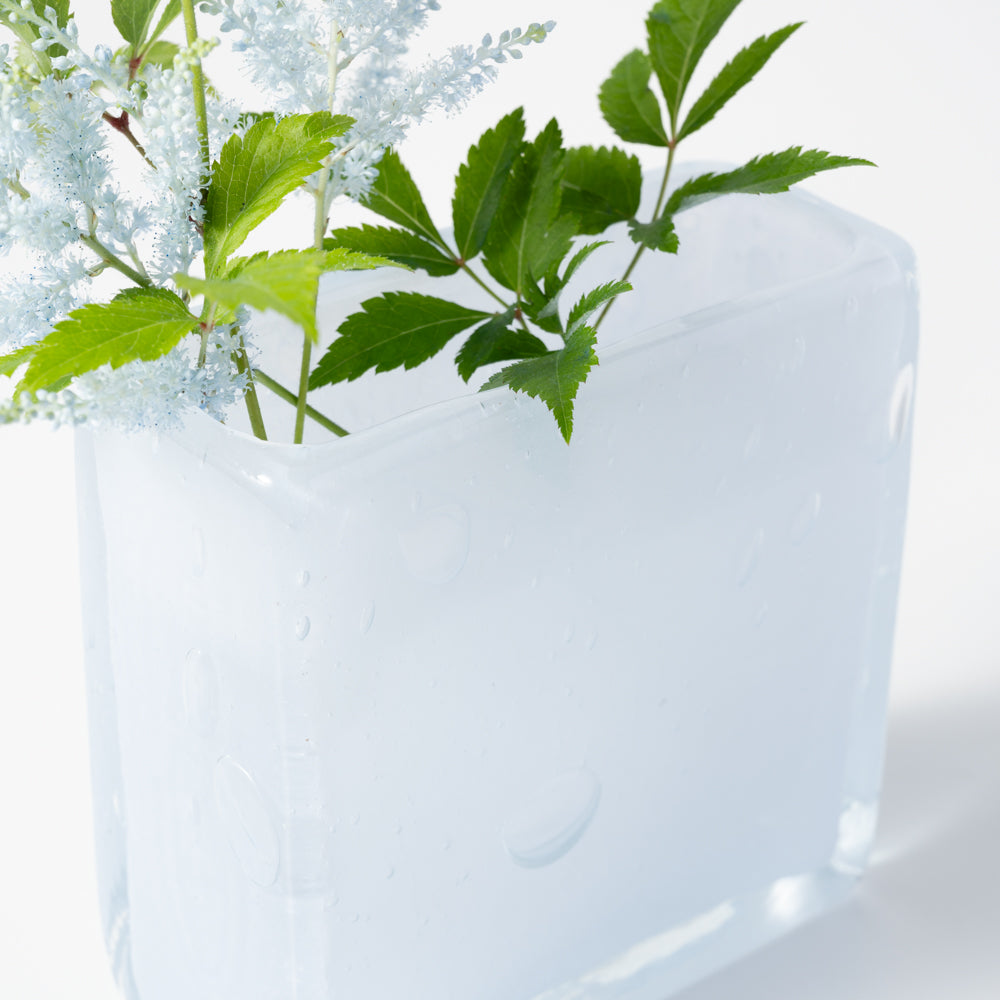 「Square XS」はお客さまから多くの要望をいただき、復刻したサイズ。卓上にぴったりのボリューム感で、一輪から数輪の花を活けるのにおすすめです。奥行き5 × 幅12 × 高さ12 (cm)