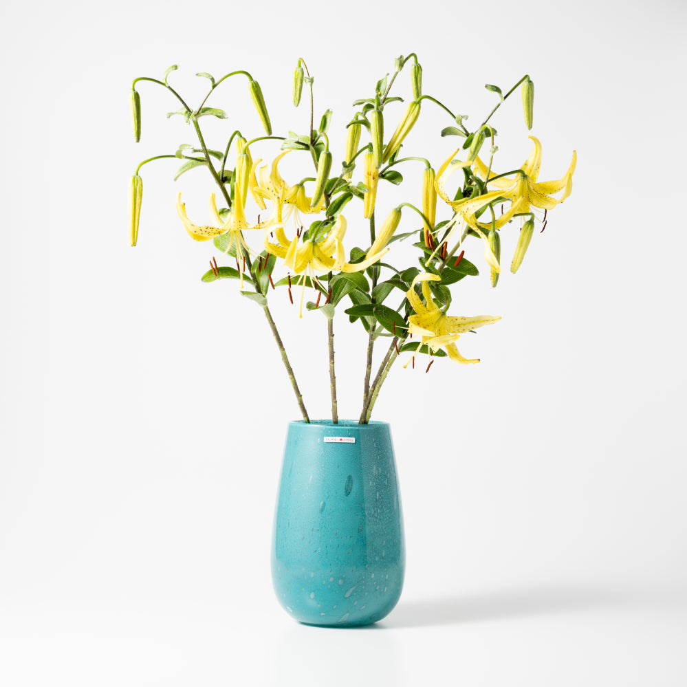 ヨーロッパでスタンダードなサイズの「Stromoboli S」は、日本でも多くのフラワーレッスンで使用されています。大きめのブーケもすっぽりと入るので、花のある暮らしを楽しみたい人におすすめです。奥行き 12 x 高さ 25 (cm)